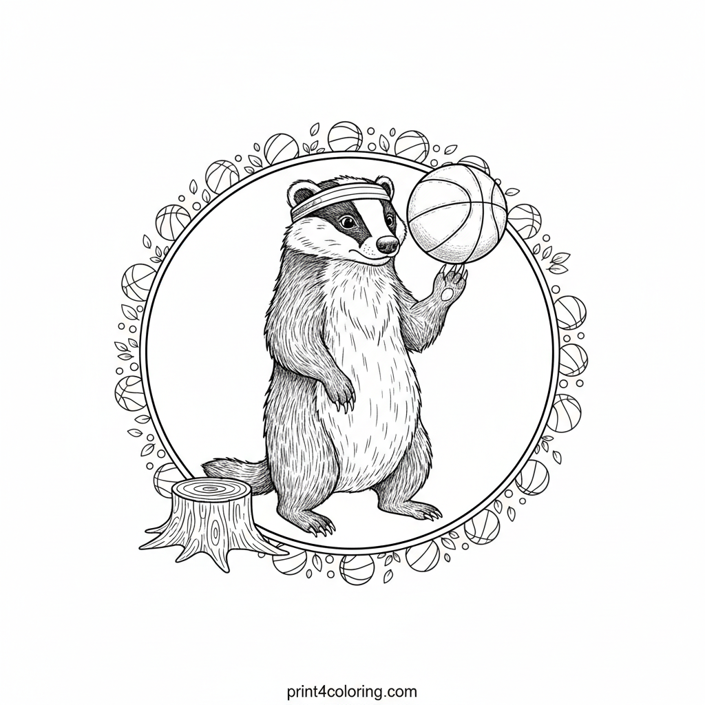 #badger#basketball#balance#animal#funny#sports#woodland#detailed#coloring-page#printable