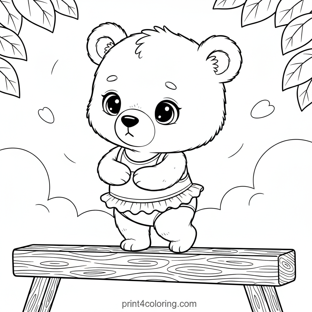 Meet Barnaby Bear, attempting a spectacular balancing act! With paws carefully placed on a narrow, textured beam and a determined, bewildered look, he's showing off his hidden talent, perhaps even in a tiny, comical leotard. This expert page invites you to add vibrant colors to his cozy performance. Get ready for a delightful challenge!