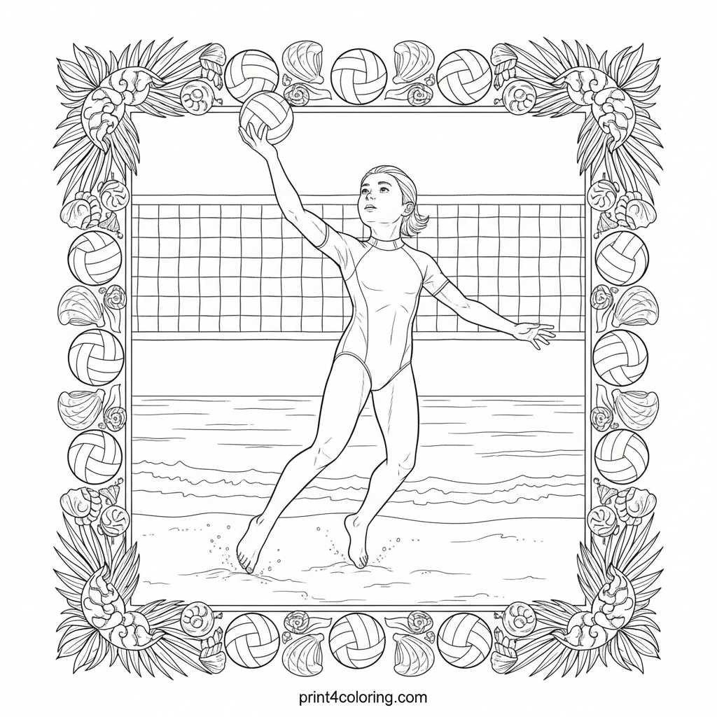 Beach Volleyball Ace: Sunny Serve Coloring Page