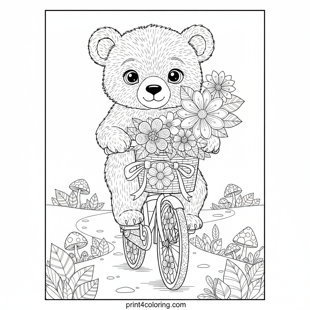 Bear Cub's Blooming Bicycle Delivery Coloring Page