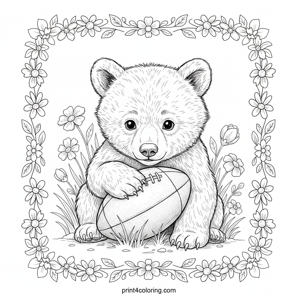 #bear-cub#rugby#wildflowers#nature#detailed#animals#sports#playful#coloring-page#printable