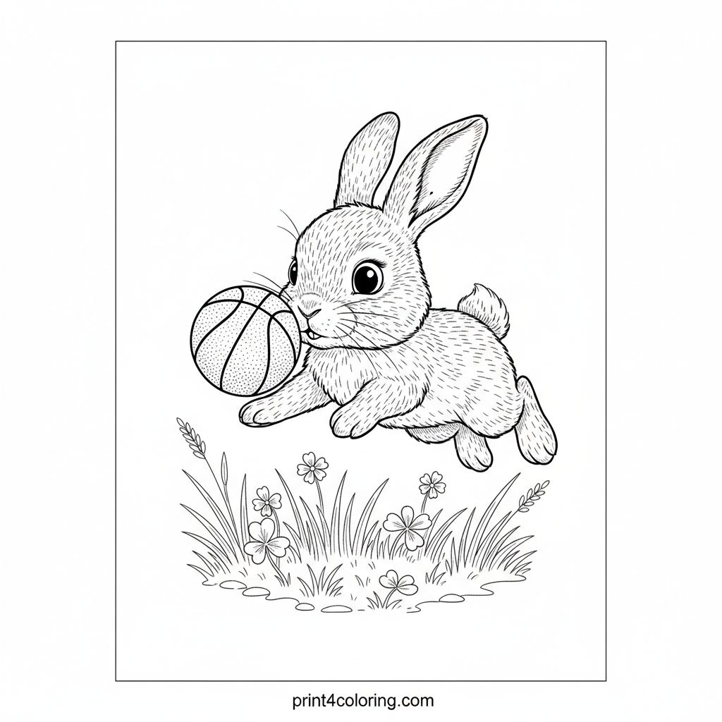 #bunny#rabbit#basketball#nature#baby animal#cute#detailed#coloring-page#printable