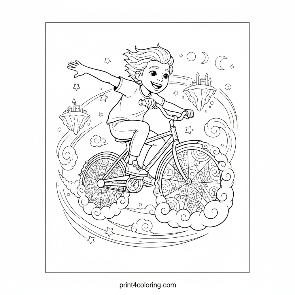 Celestial Cyclist: Skyborne Adventure Coloring Page