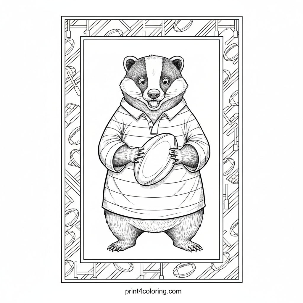 Get ready for a laugh with this charming badger! Wearing an oversized rugby jersey, this furry friend looks hilariously surprised as the rugby ball slips right through its paws. With intricate fur details and textured fabric, this expert page promises a delightful coloring challenge for all ages.