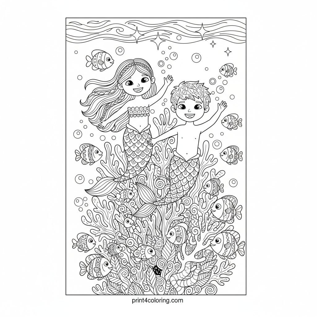 Coral Kingdom Ascent: Merfolk's Grand Expedition Coloring Page