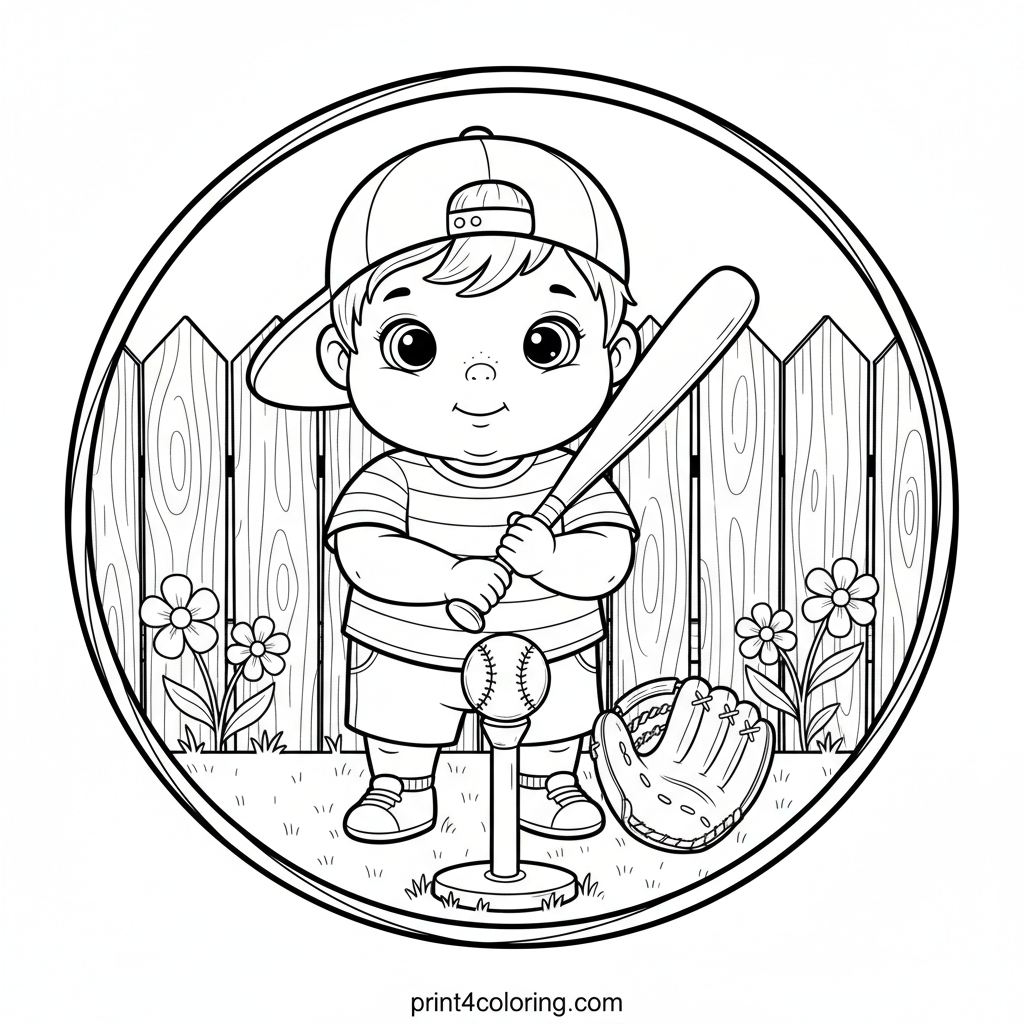 Join a determined young batter as they practice their swing! This detailed scene captures the focus and joy of learning baseball. With a bat ready, a ball on the tee, and a glove nearby, this page is perfect for aspiring athletes to color. Don't forget the blooming wildflowers!