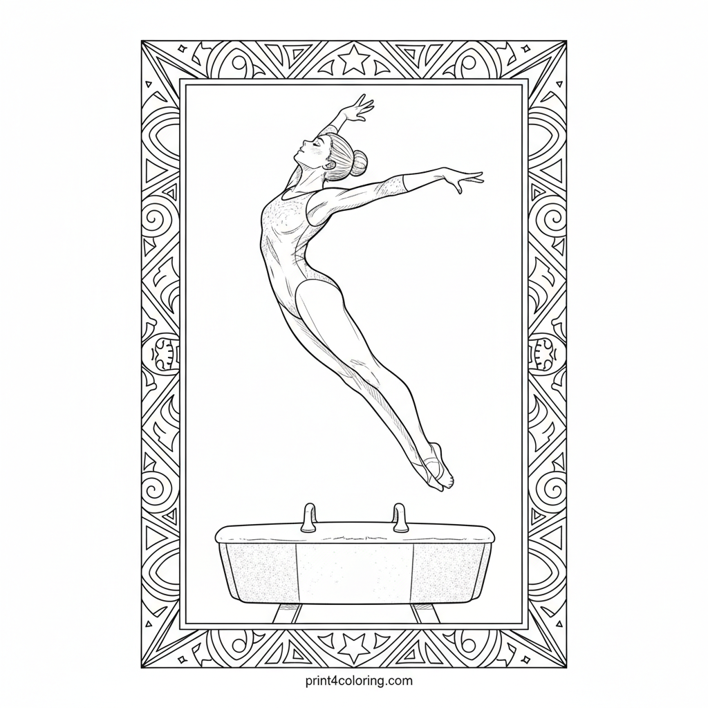Dynamic Gymnast's Vault: Mid-Air Grace Coloring Page