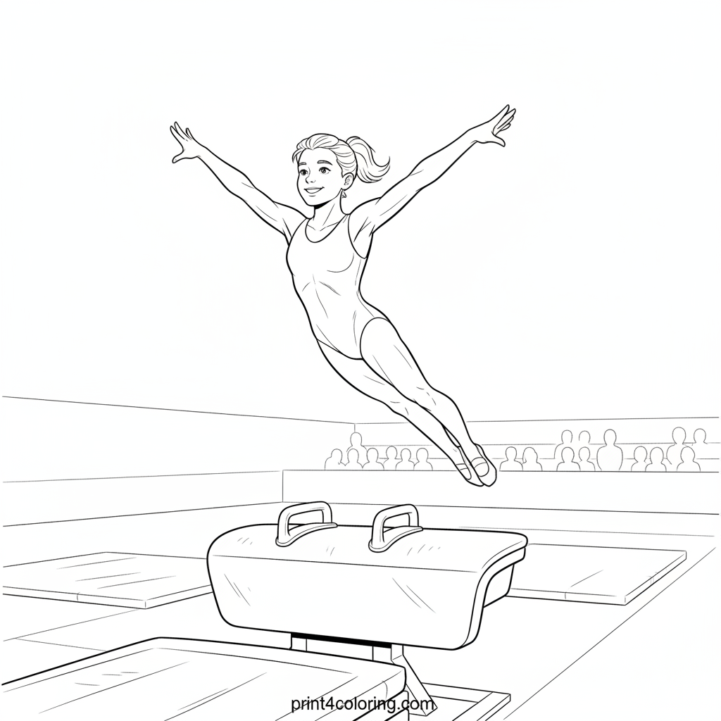 Dynamic Vault: Gymnast in Flight Coloring Page