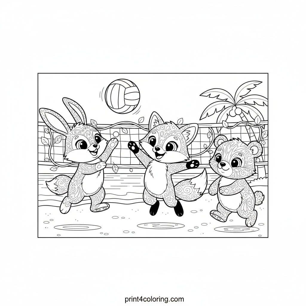 Fluffy Friends' Beach Volleyball Bash Coloring Page
