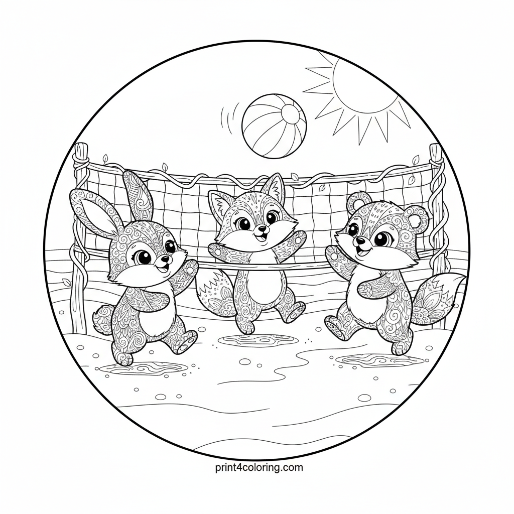 Fluffy Friends' Beach Volleyball Bonanza Coloring Page