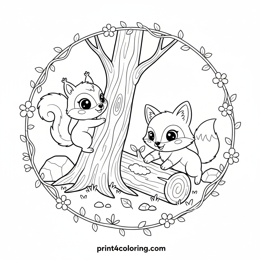 #forest#animals#squirrel#fox#obstacle#nature#woodland#coloring-page#printable