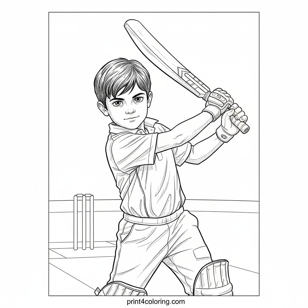 Future Champion Cricketer's Perfect Swing Coloring Page