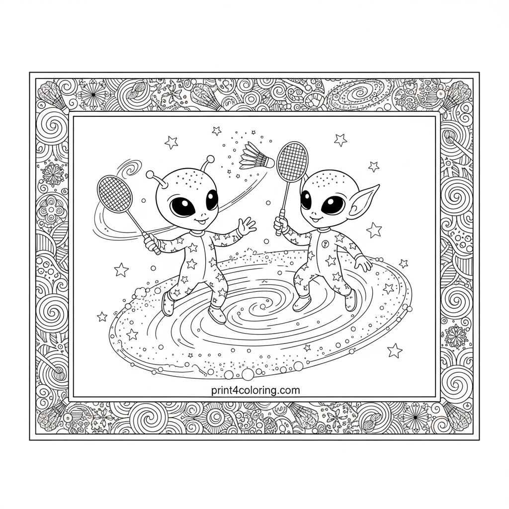 Galactic Racket Rally: Starlight Badminton Coloring Page
