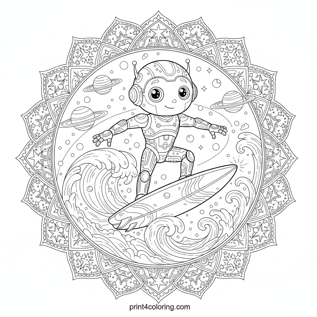 #cosmic#surfer#stardust#space#alien#robot#futuristic#planets#nebulae#sci-fi#coloring-page#printable