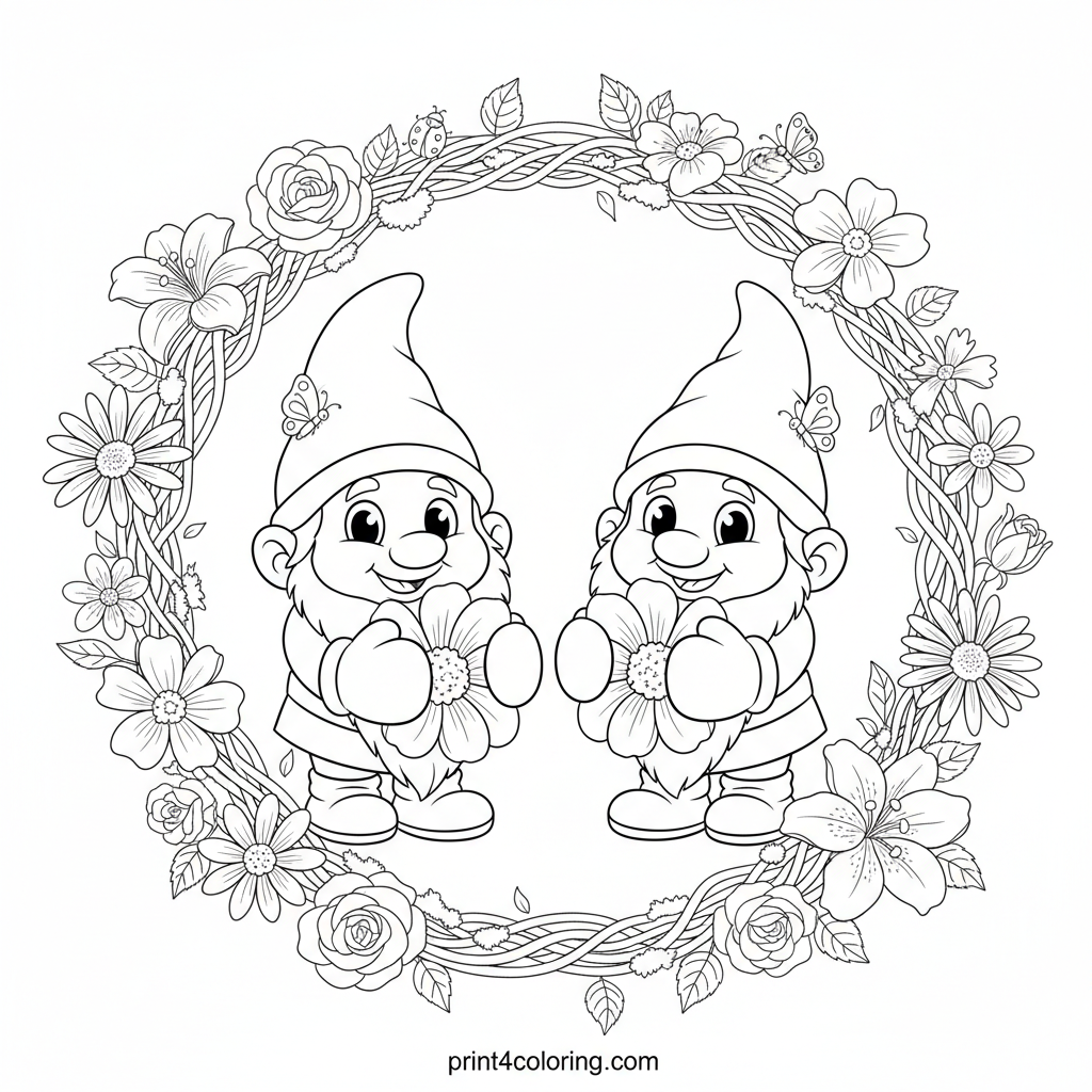 Garden Gnome's Petal Punch-Out: A Whimsical Bout Coloring Page