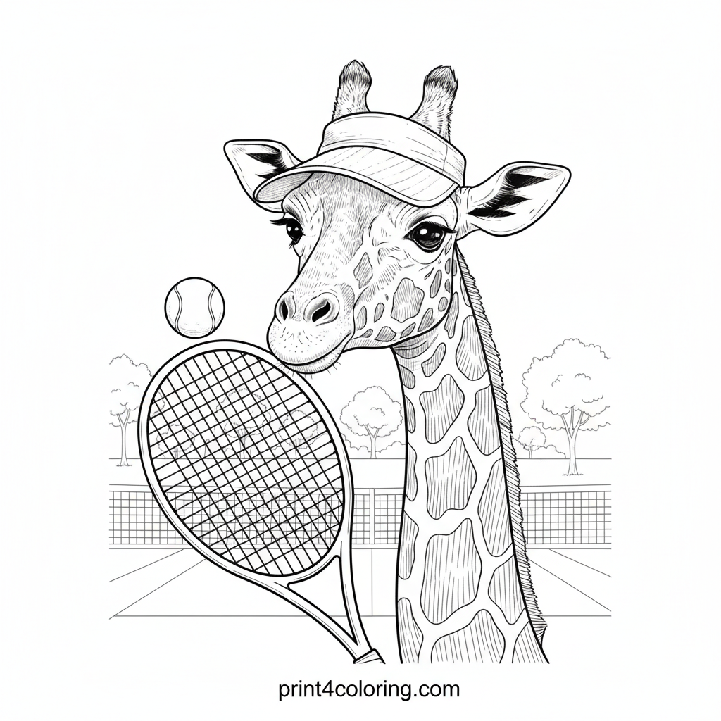 #giraffe#tennis#sports#animal#funny#game#realistic#coloring-page#printable