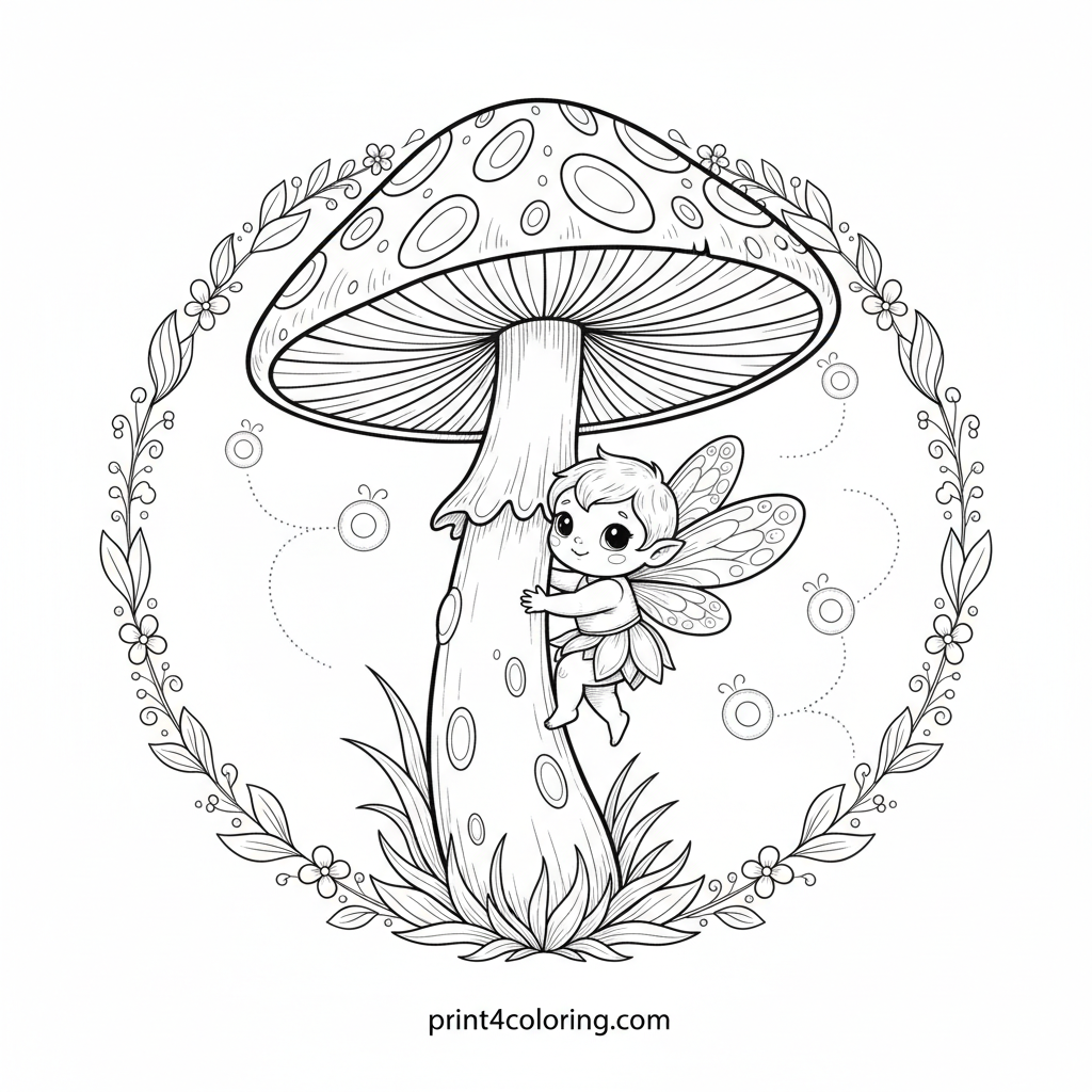 Glimmerwing's Grand Mushroom Ascent Coloring Page