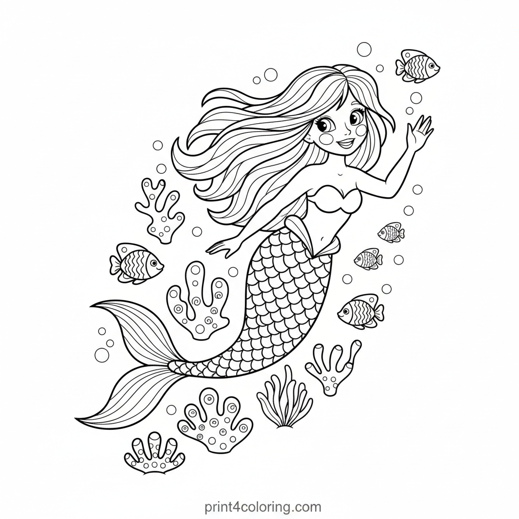 - 2🖍️ **Flowing Hair Dynamics** - Color the mermaid's long, detailed hair by layering different shades of one color (e.g., light blue, medium blue, dark blue) to show movement and depth. Add subtle highlights to individual strands.