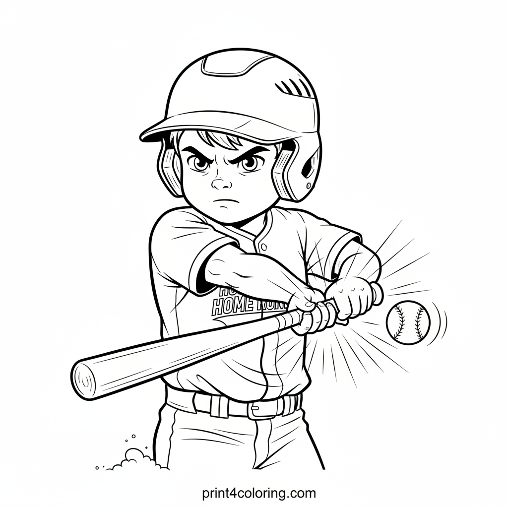 Witness the thrilling moment of a grand slam! This detailed coloring page captures a baseball player mid-swing, bat powerfully connecting with the ball. See the dust fly, muscles flex, and the determined expression on their face as they aim for victory. Get ready to color a home run!
