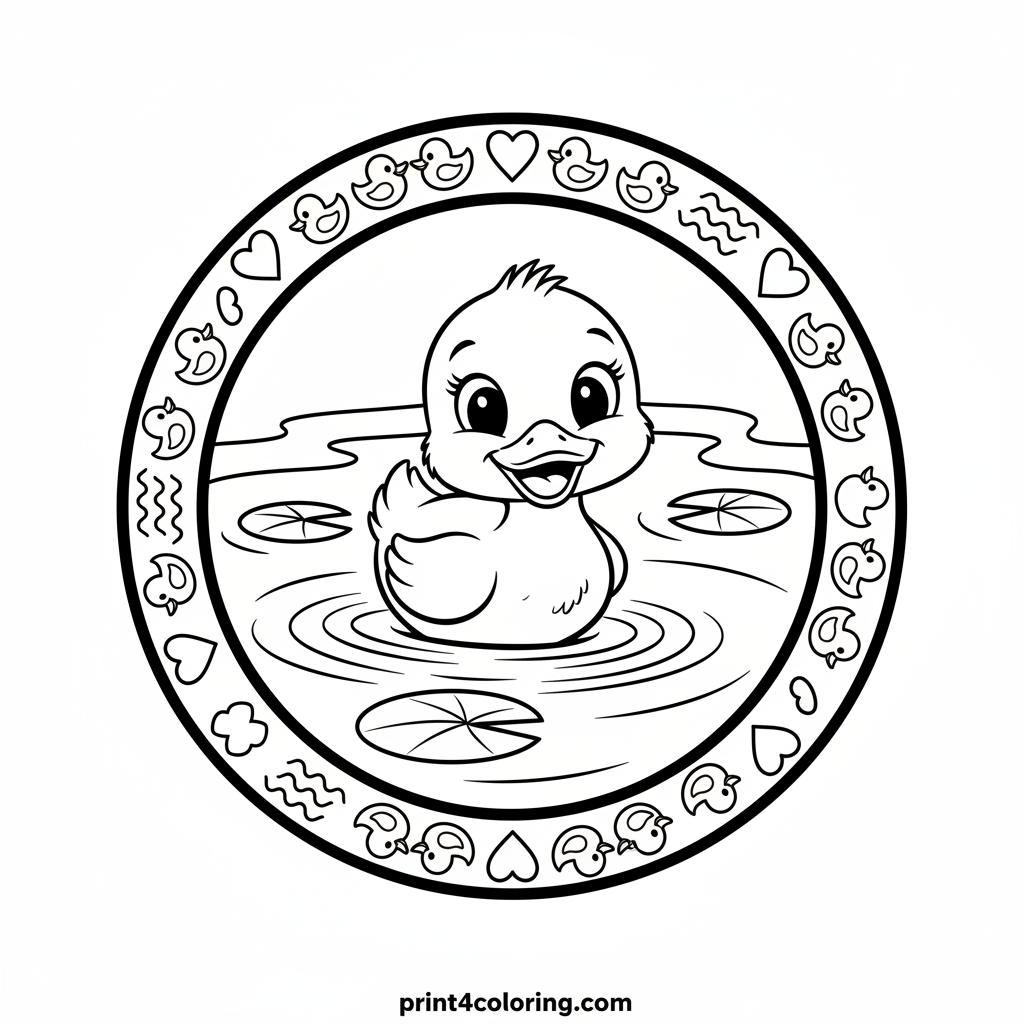 Dive into the delightful world of a happy little duckling on its very first swim! With big, innocent eyes, this adorable baby duck paddles joyfully in a serene pond, surrounded by gentle, round lily pads. Perfect for young artists to bring to life with vibrant colors and create a heartwarming scene of aquatic fun.