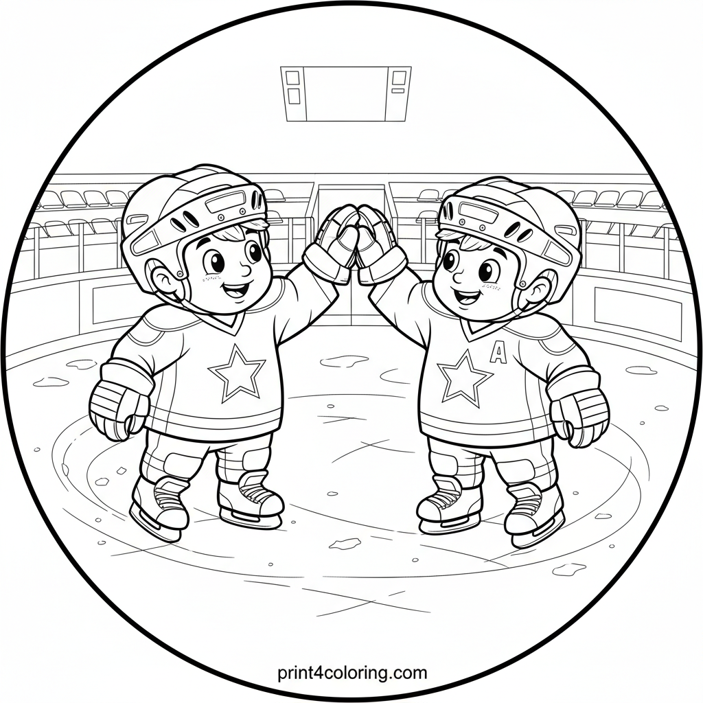 High-Five Heroes: Teamwork on Ice Coloring Page