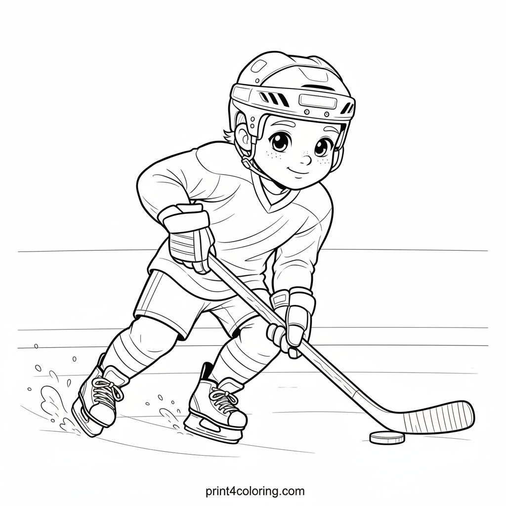 Ice Rink Elegance: Young Hockey Player Coloring Page