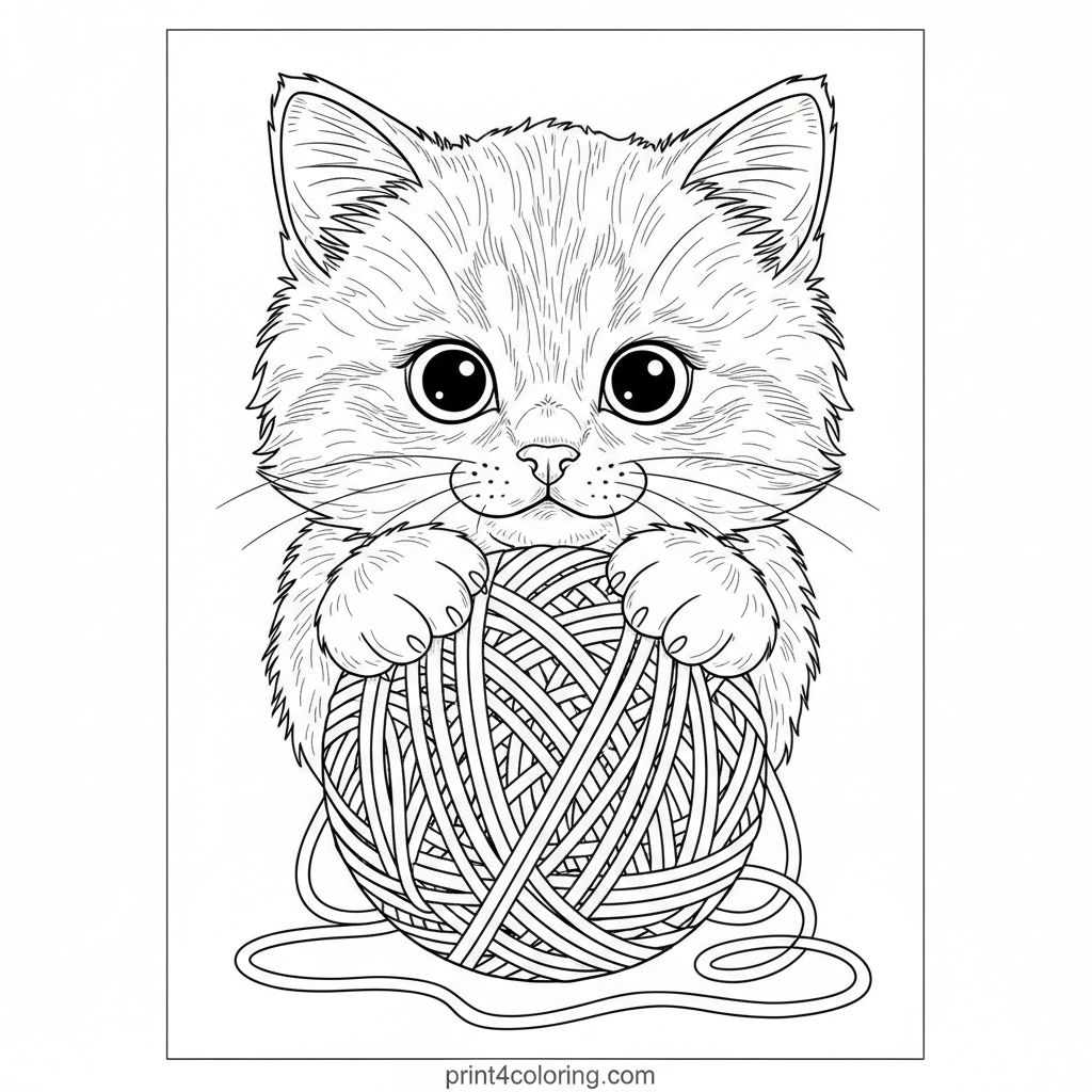 Kitten's Yarn Adventure: A Fluffy Fray Coloring Page