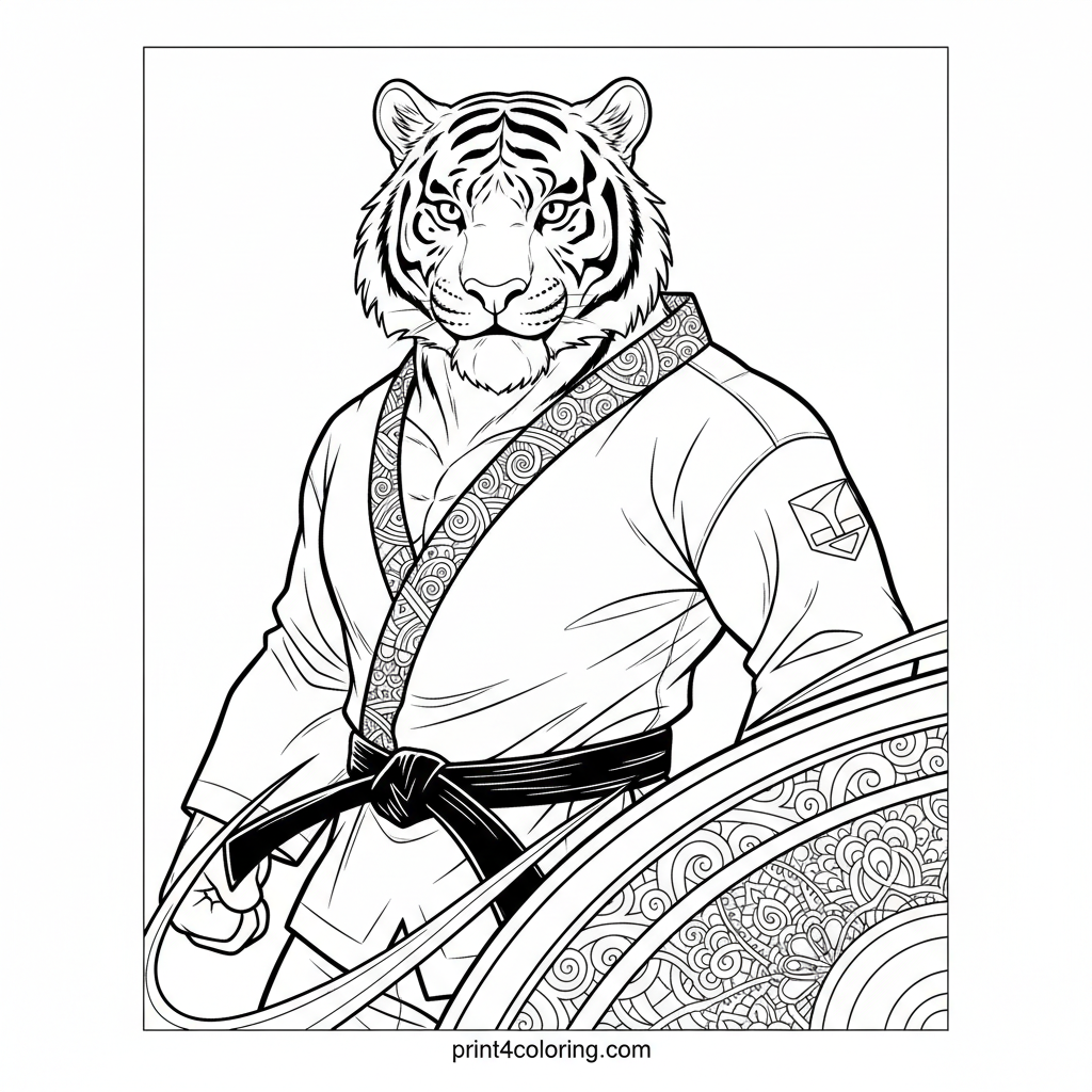 #tiger#taekwondo#martial-arts#kick#action#anthropomorphic#fantasy#master#coloring-page#printable