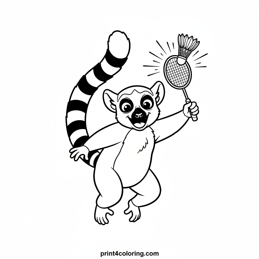 Lenny the Lemur's Badminton Blast-Off! Coloring Page