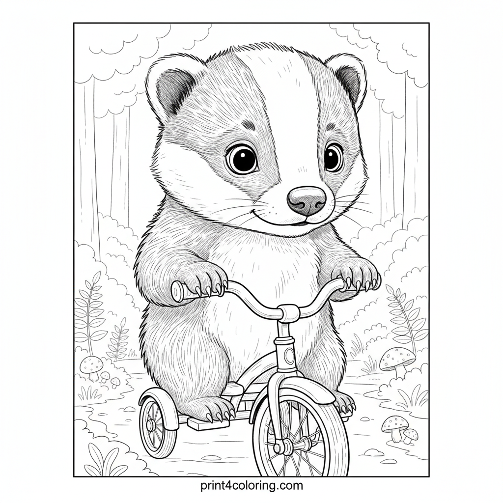Little Badger's Forest Tricycle Adventure Coloring Page