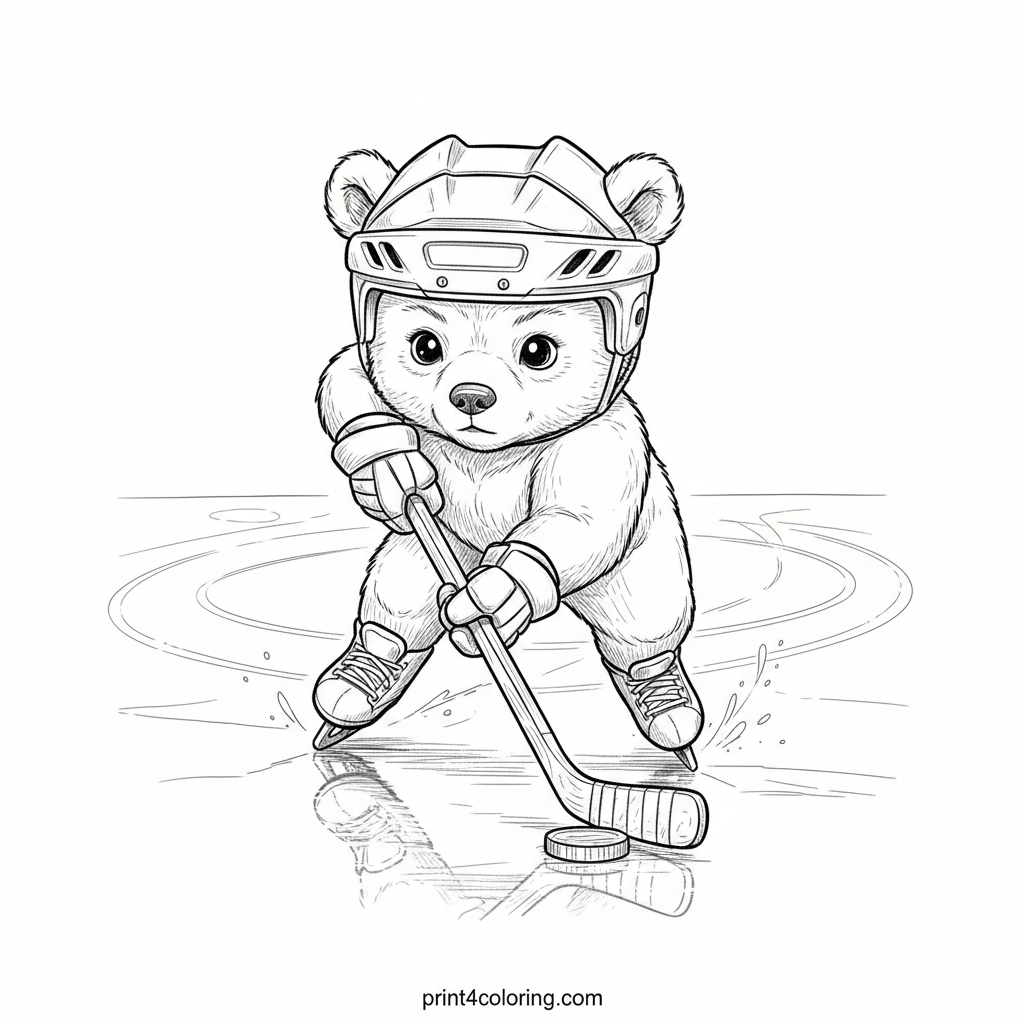 Join a determined little bear cub as it takes to the ice for the very first time! Wearing a big hockey helmet and tiny skates, this brave cub is balancing perfectly on one skate, ready to play. Color the detailed ice with its delicate marks and reflections, bringing this sweet, icy scene to life.