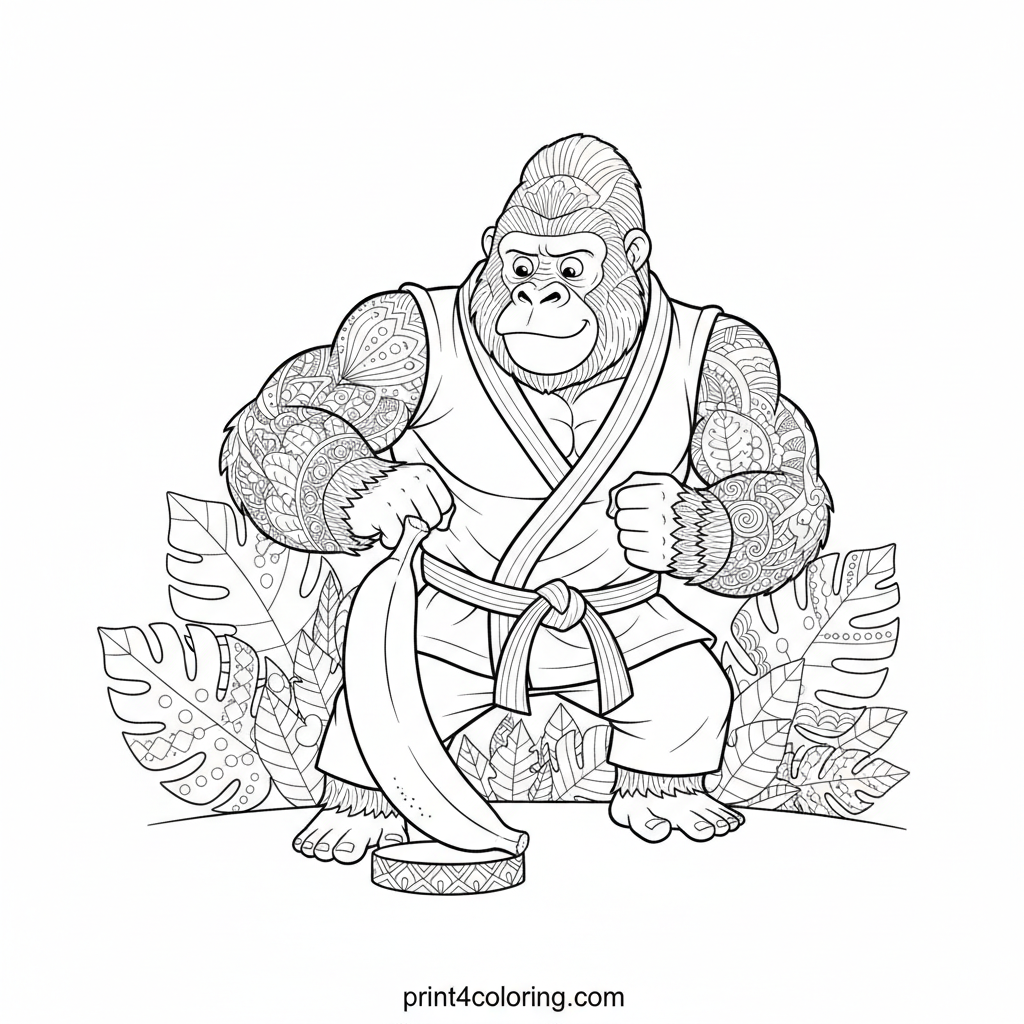 Master Gorilla's Banana Chop Challenge Coloring Page