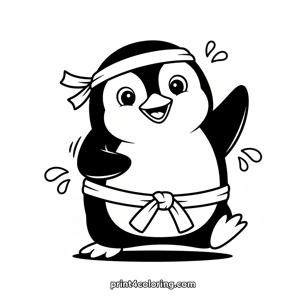 #penguin#karate#animal#funny#martial-arts#cute#coloring-page#printable