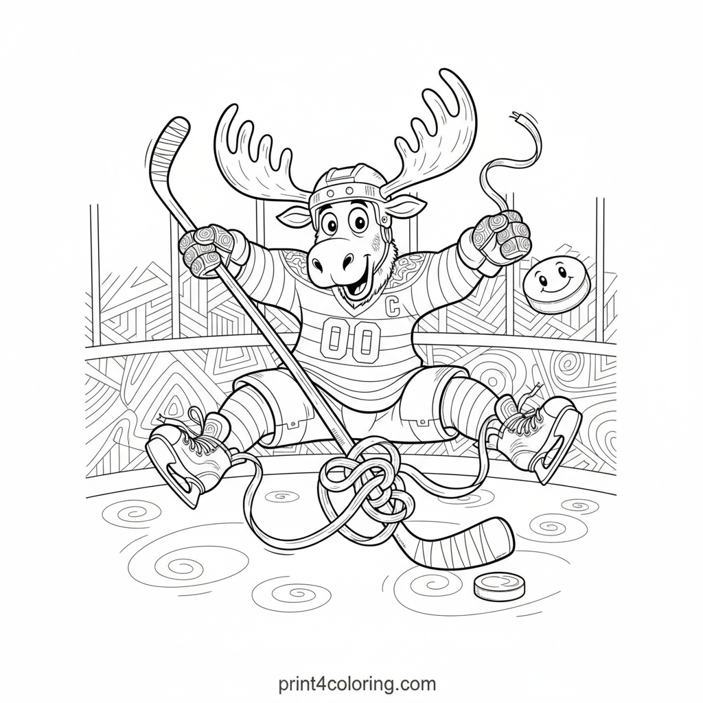 #moose#hockey#funny animals#winter sports#tangled skates#coloring-page#printable