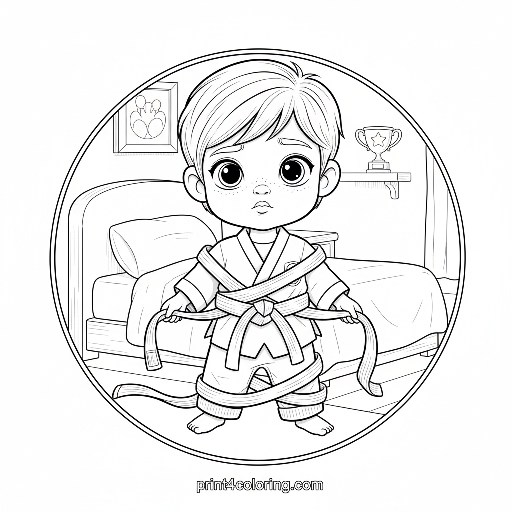#taekwondo#martial-arts#children#belt-tying#challenge#bedroom#sports#perseverance#humor#coloring-page#printable