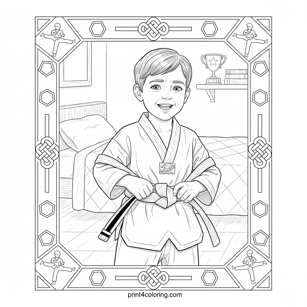 #taekwondo#martial-arts#belt#child#challenge#funny#bedroom#sports#determination#self-reliance#kids#coloring-page#printable