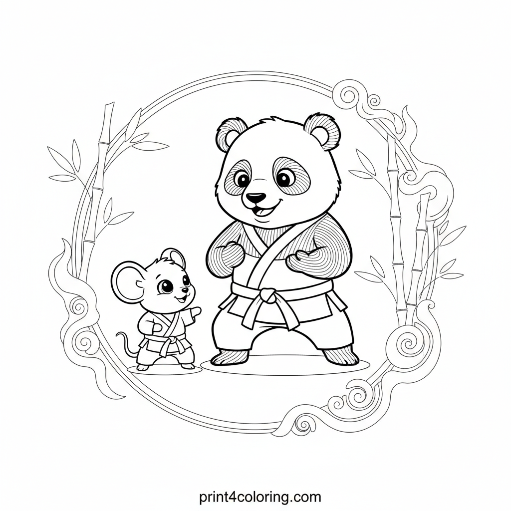 #panda#mouse#karate#sensei#zen#bamboo#animals#martial-arts#coloring-page#printable