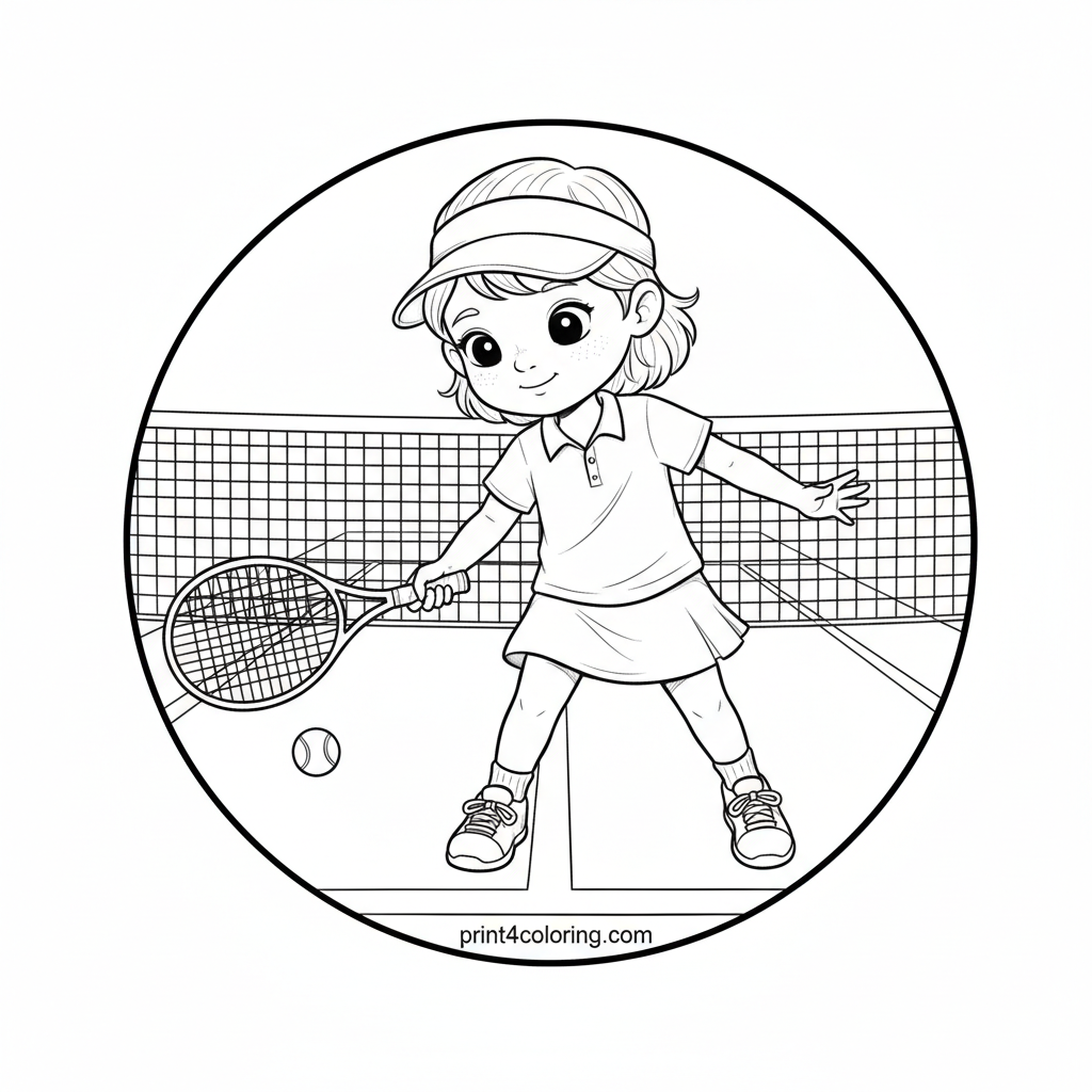 Perfect Drop Shot: Young Tennis Star Coloring Page