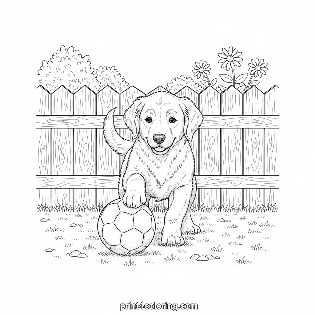 #puppy#dog#golden-retriever#soccer#sports#playful#lawn#garden#animal#cute#coloring-page#printable