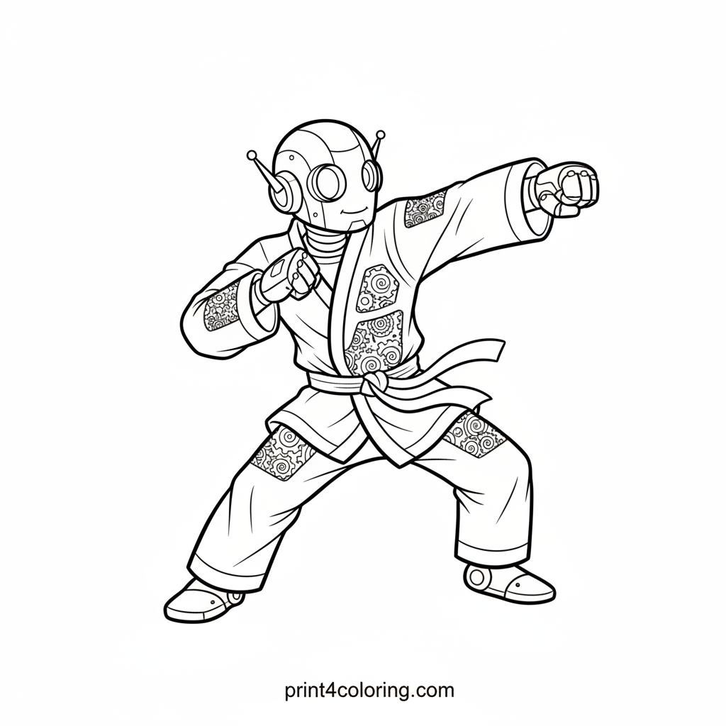 #robot#taekwondo#martial-arts#professor#funny#action#gears#circuits#detailed#sci-fi#coloring-page#printable