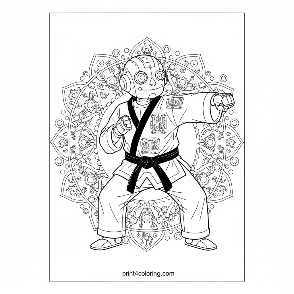 #robot#taekwondo#martial-arts#funny-robot#sci-fi#gears#patterns#hard-difficulty#coloring-page#printable