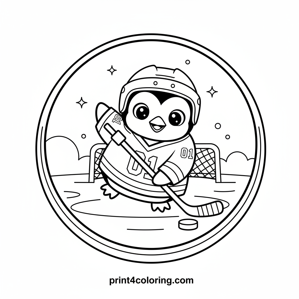 Puck-tastic Penguin's Hockey Dream Coloring Page