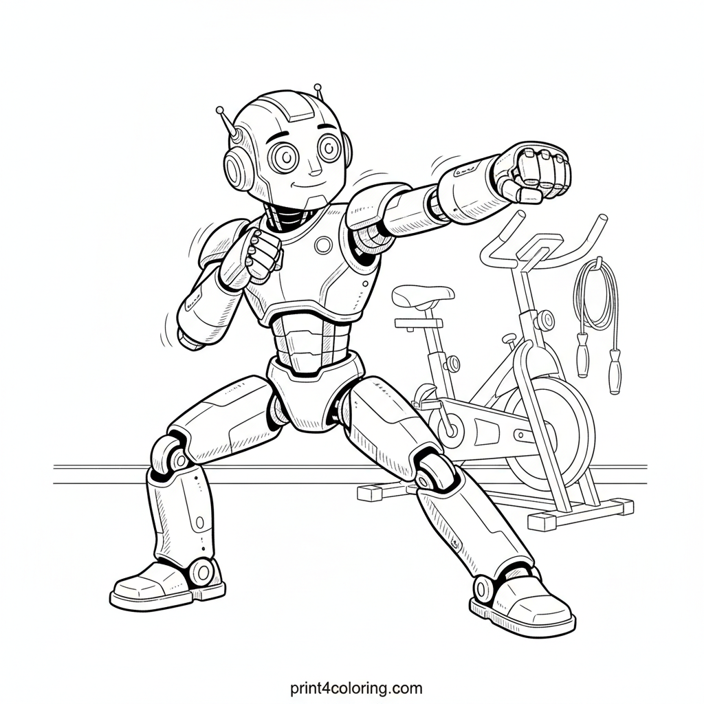 Robo-Fit Fun: A Gym Challenge Coloring Page