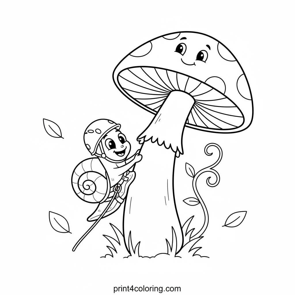 Silly Snail's Mushroom Mountain Climb Coloring Page