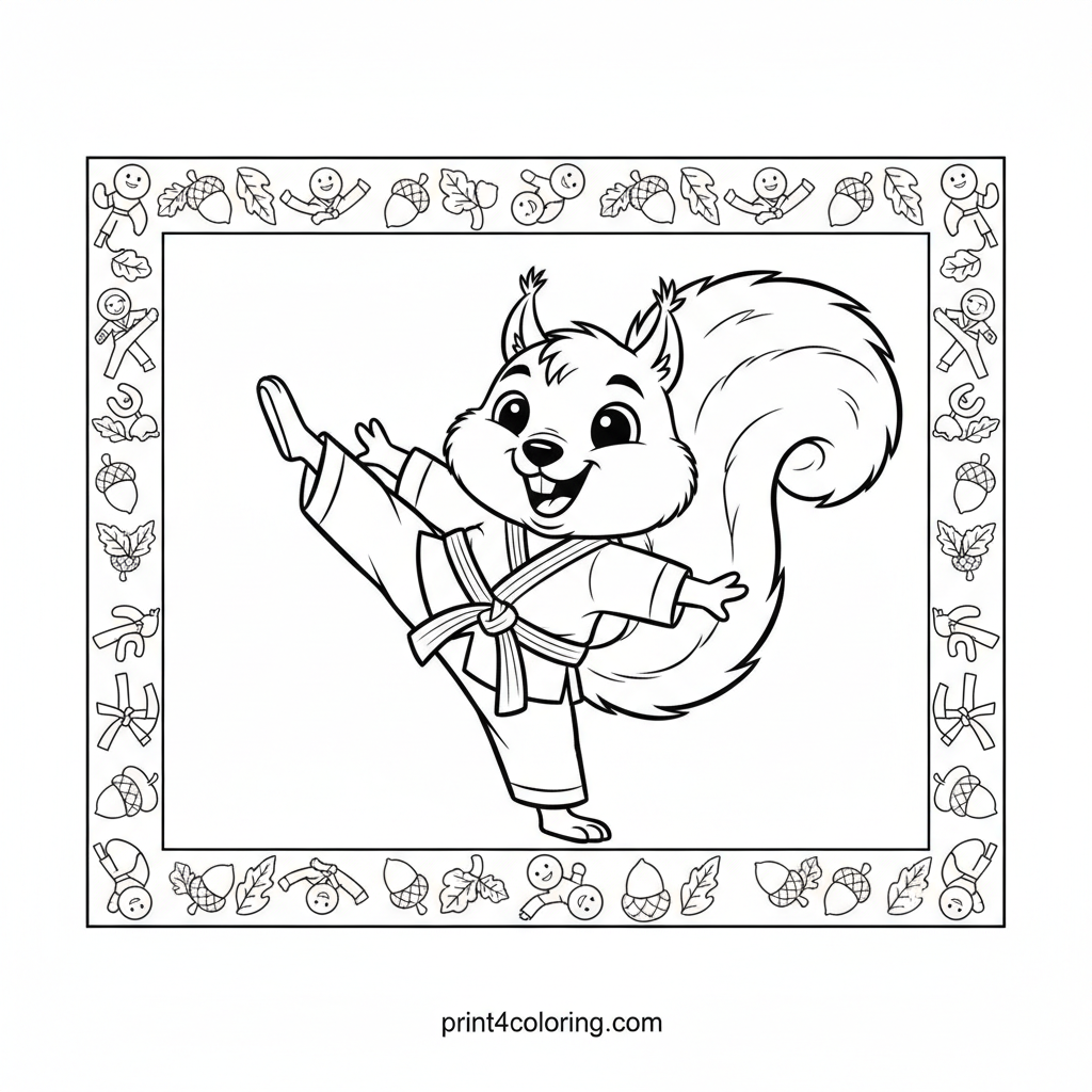 Silly Squirrel's Taekwondo Twist Coloring Page