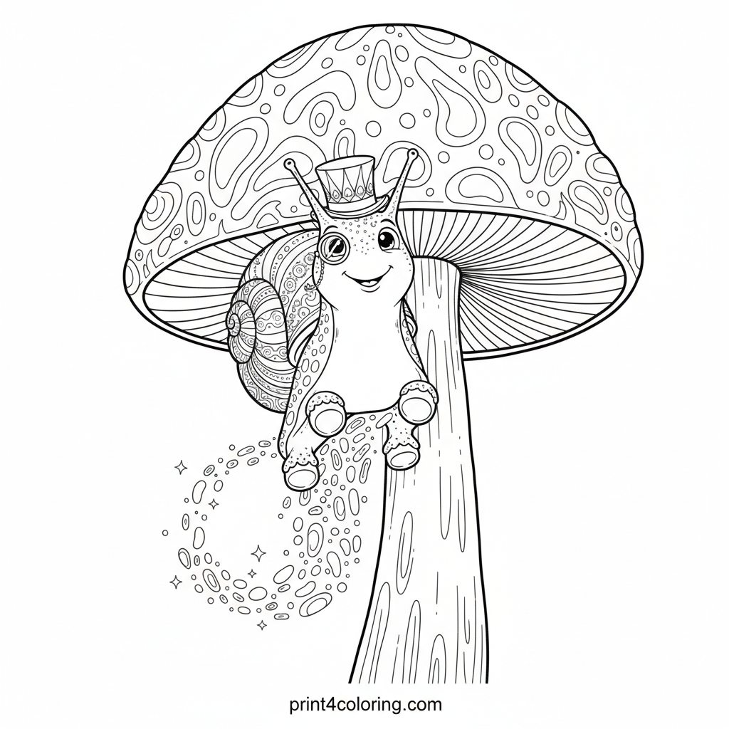 #snail#mushroom#dapper#fantasy#whimsical#detailed#coloring-page#printable
