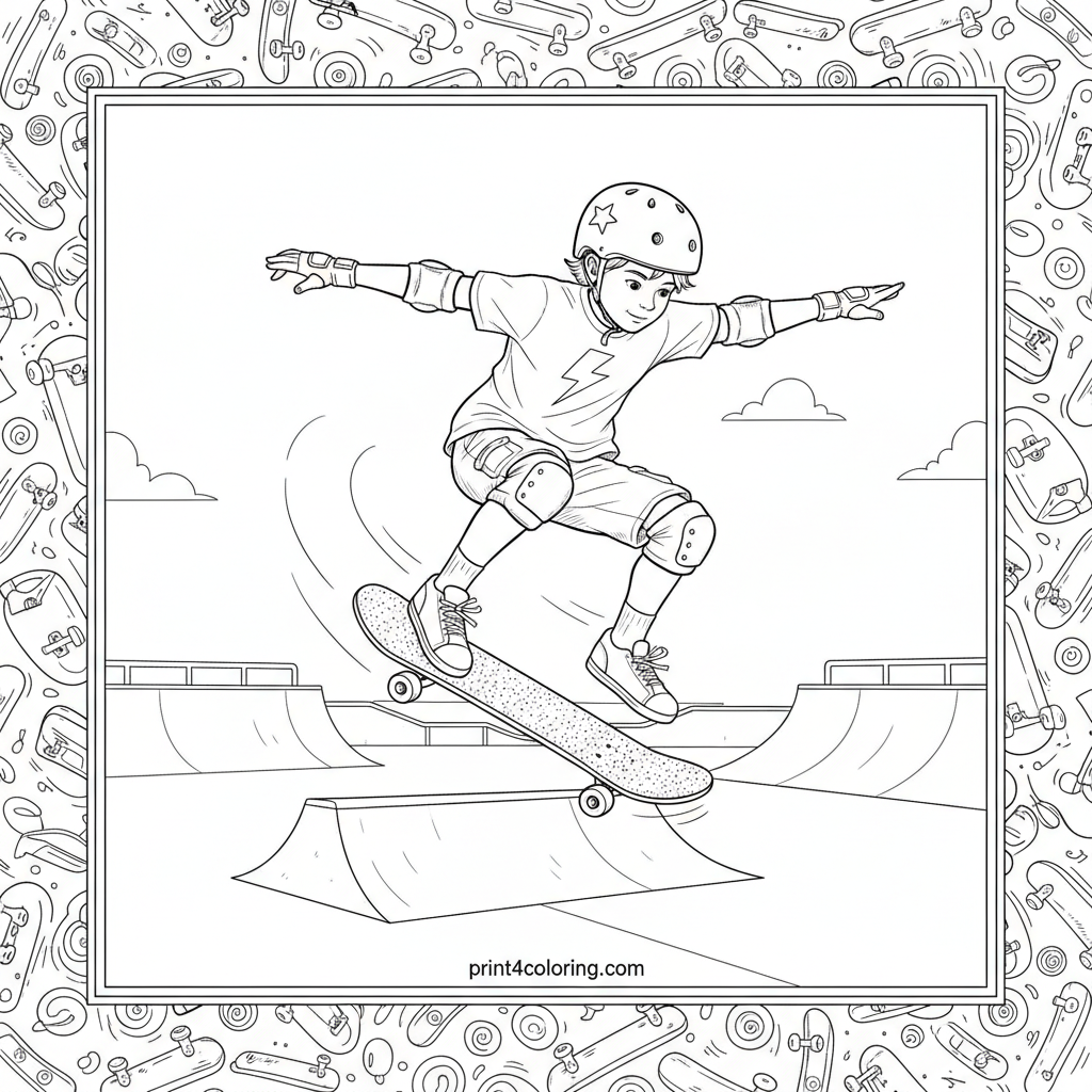 Skateboarder's Leap: Dynamic Air Time Coloring Page