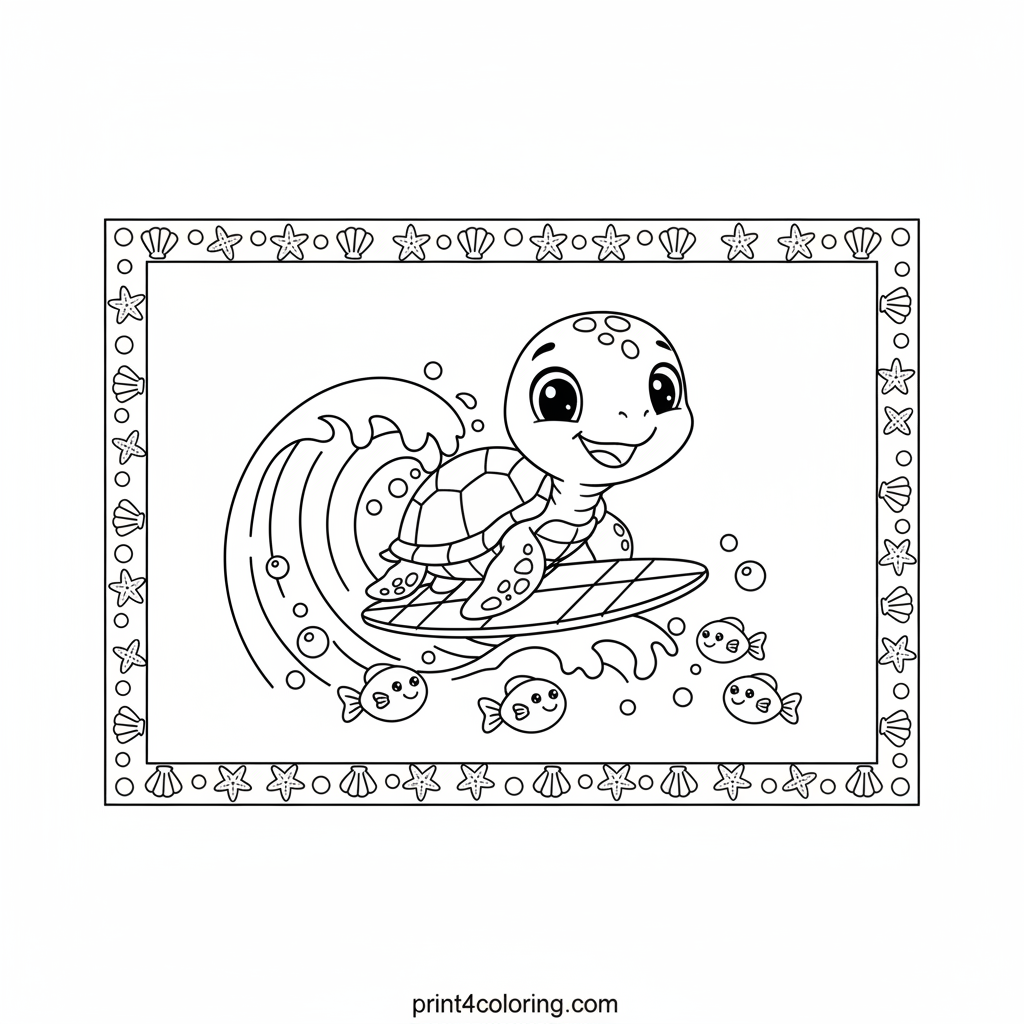 Smiling Surfer Sea Turtle Adventure Coloring Page