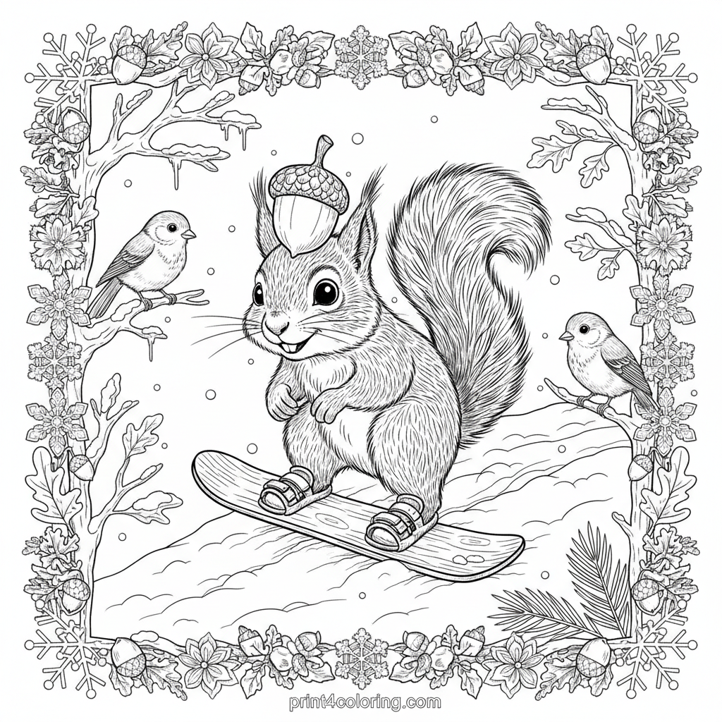 Snowboard Squirrel's Acorn Adventure Coloring Page