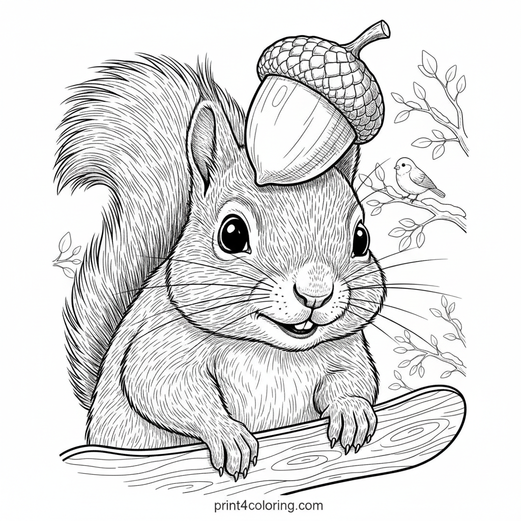Snowboarding Squirrel's Epic Acorn Ride Coloring Page